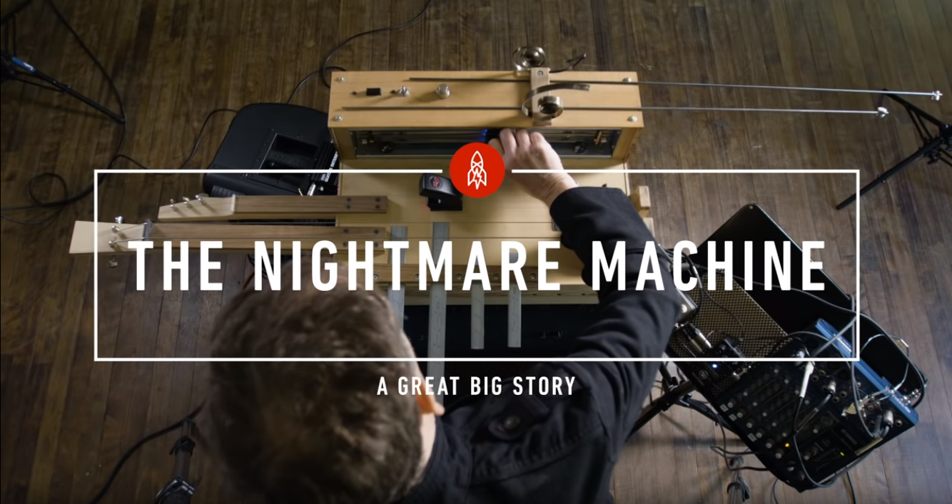 With a normal instrument, says Korven in the Great Big Story Video above, "you're expecting it to have a sound that is pleasing." But with the Apprehension Engine, "the goal is to just produce sounds that, in this case, are disturbing." What we hear is less music than a sonic approximation of the abyss itself, which somehow emerges from his manipulation of a variety of strings, bars, wheels, and bows attached to a wooden box — as analog a device as one would ever encounter in the 21st century. "I originally commissioned the Apprehension Engine because I was tired of the same digital samples, which resulted in a lot of sameness," says Korven. "I was looking for something more experimental, more acoustic, that would give me a little more of an original sound."